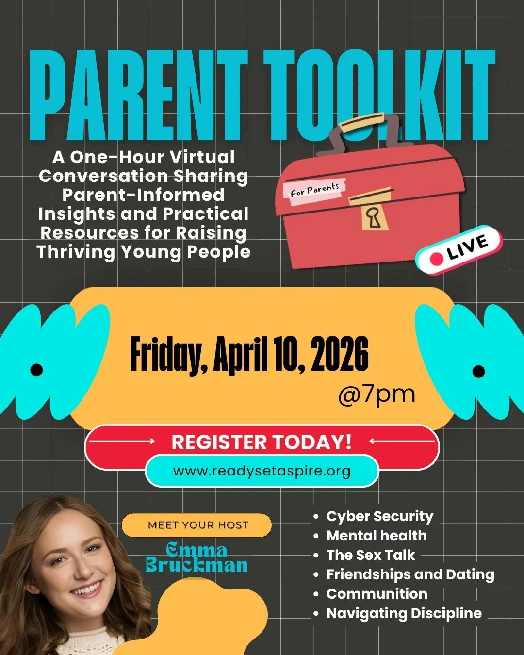 On behalf of Ready Set ASPIRE, we invite you to join us for Parent Toolkit Live, hosted by Emma Bruckman, 2025/2026 MSU BSW Intern.